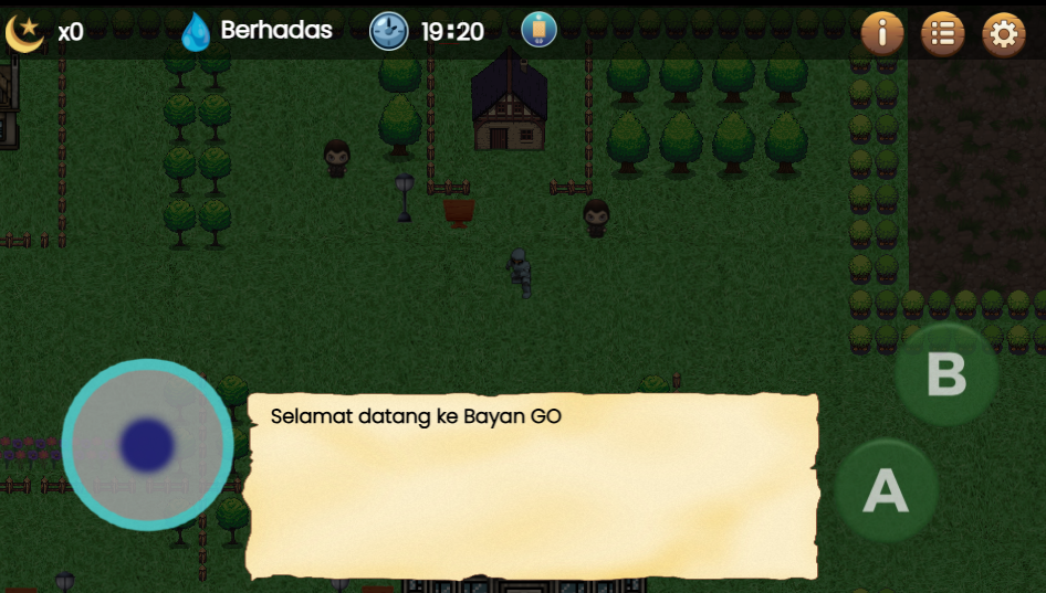 BayanGO ialah permainan RPG 2D yang menggabungkan elemen eksplorasi, tugasan (quest), dan pembelajaran ringkas dalam bentuk permainan. Pemain akan bergerak di sebuah kampung kecil, berinteraksi dengan NPC, dan menyelesaikan beberapa tugasan asas untuk memahami konsep kerjasama, tanggungjawab, dan pembelajaran ringan.